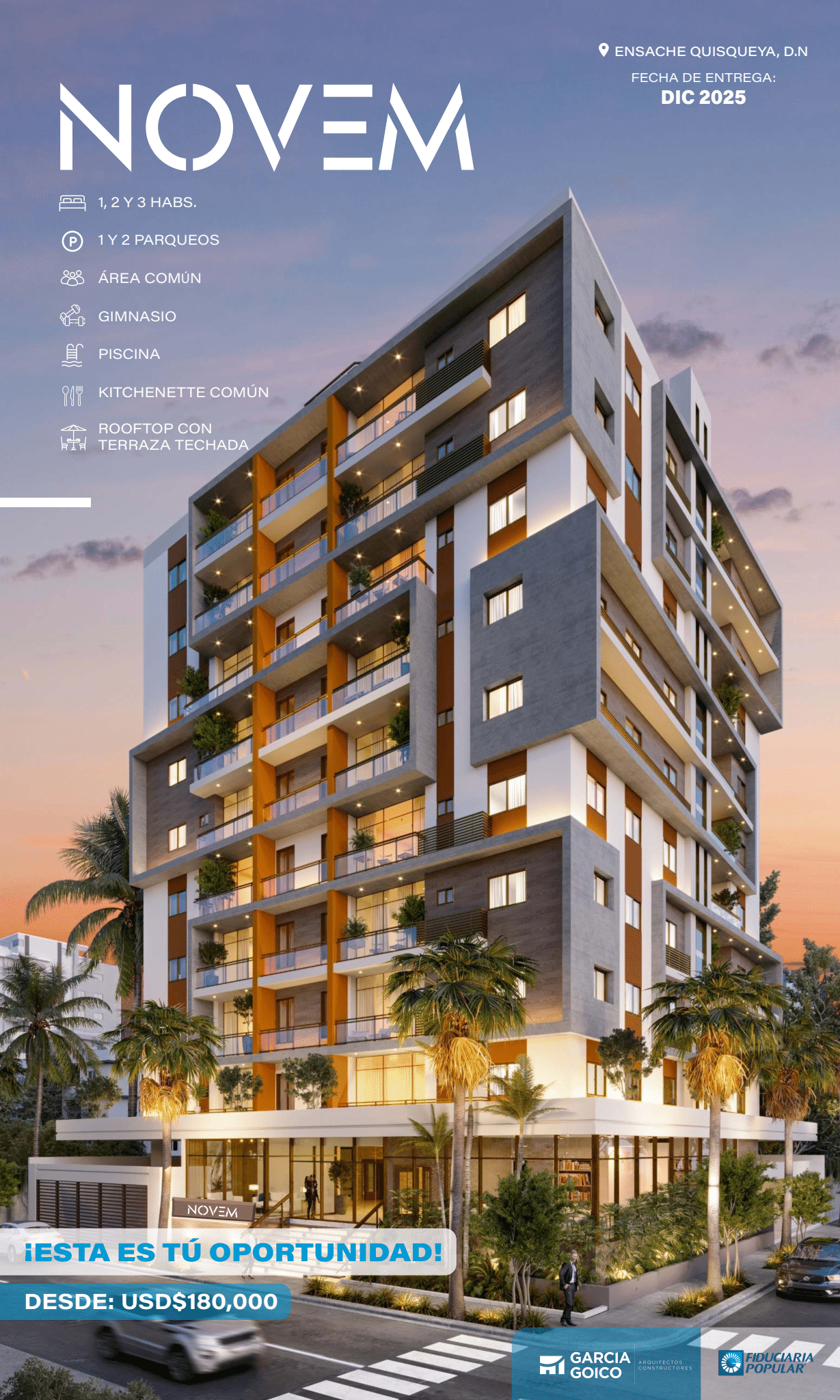NOVEM ofrece un hogar con todas las comodidades y amenidades que permiten una vida confortable, en proximidad a lugares estratégicos dentro de la ciudad Santo Domingo.