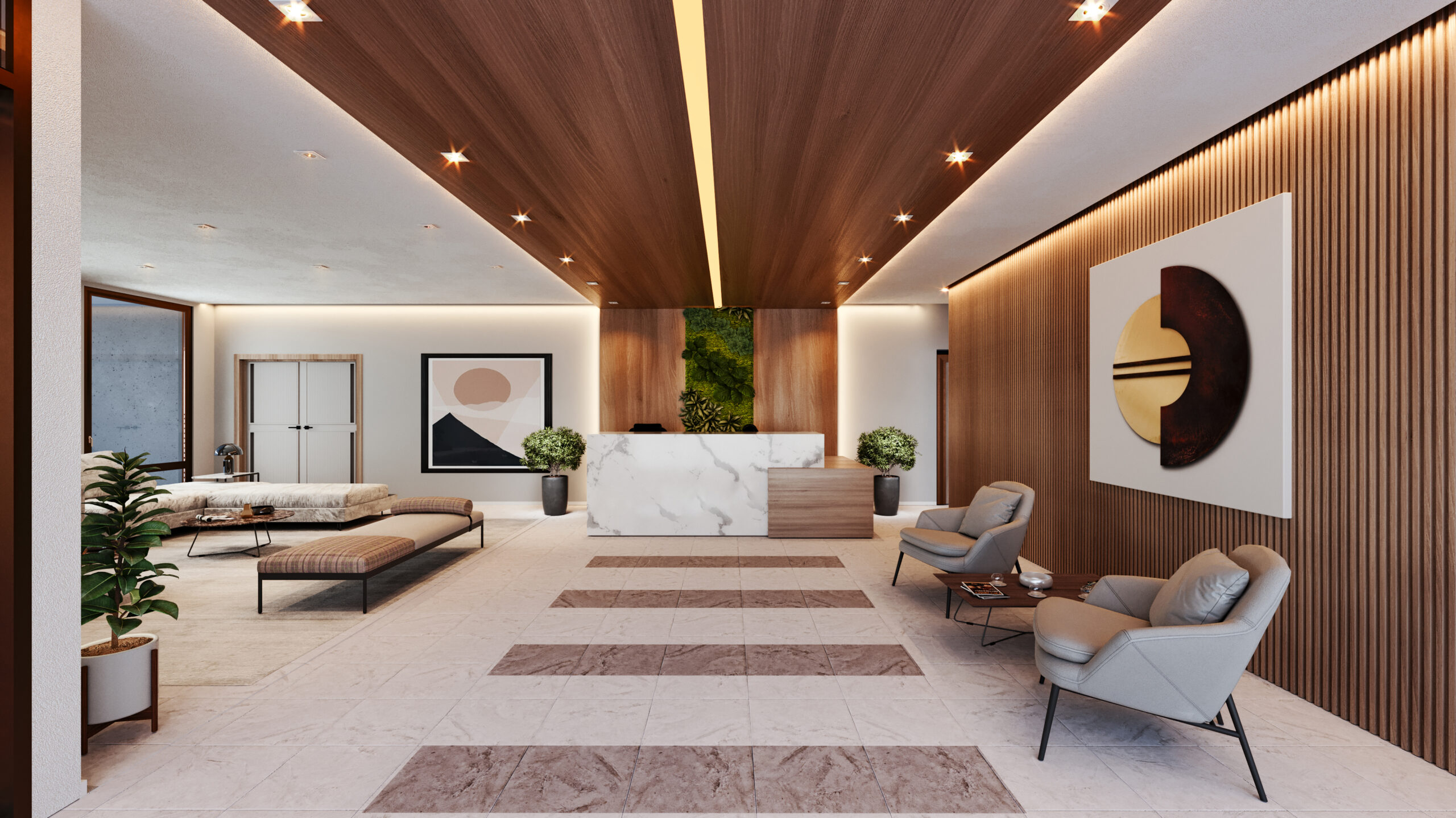 En los niveles de sótanos y primer nivel se ubicarán todos los estacionamientos, lockers, lobby, áreas sociales, servicios y soporte.